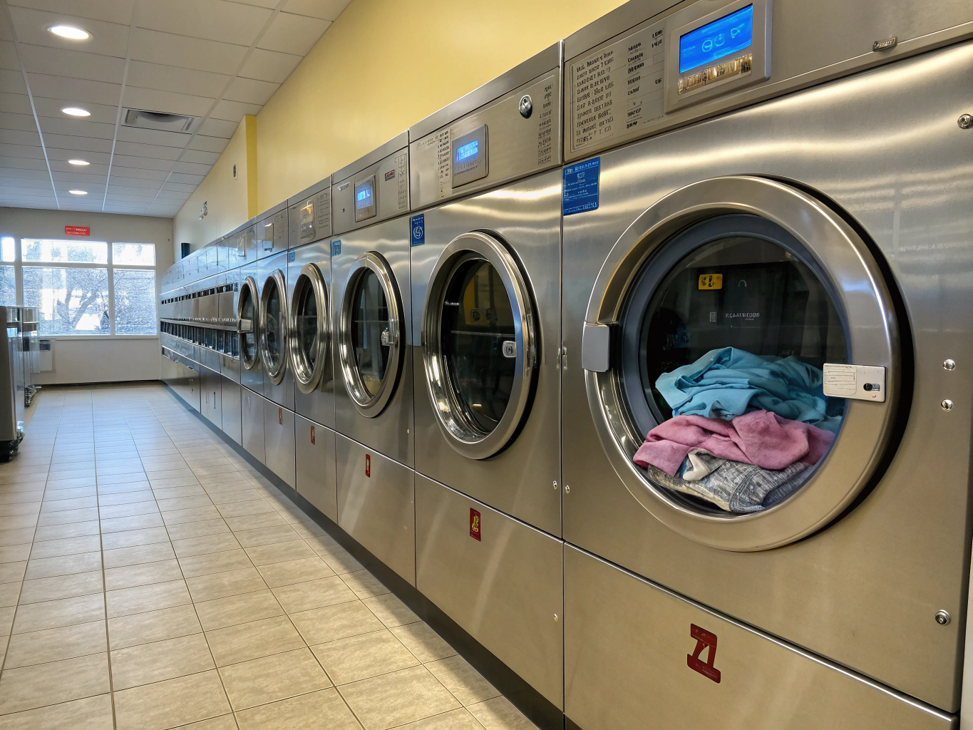 A modern self-service laundromat concept designed for operational excellence and long-term sustainability in Spartanburg, South Carolina.